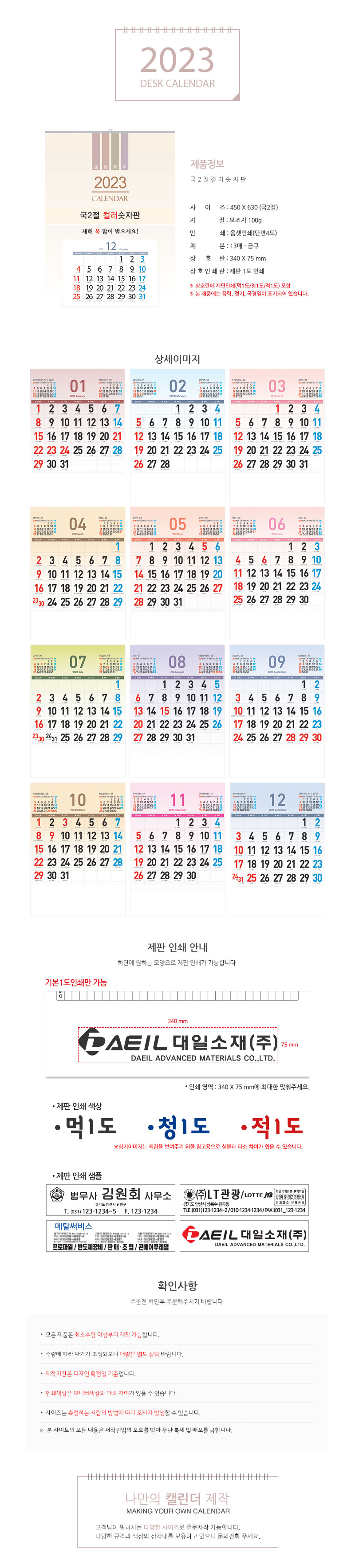 [벽걸이 캘린더] 국2절컬러숫자판
