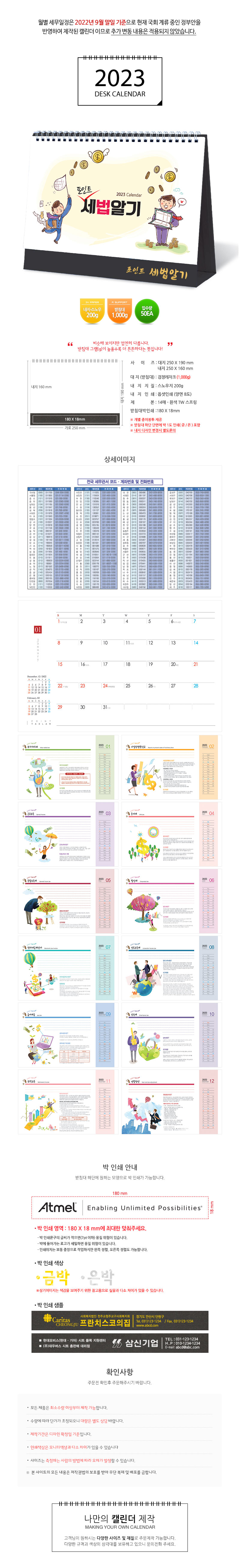 [일반형 캘린더] 포인트세법알기 250*190