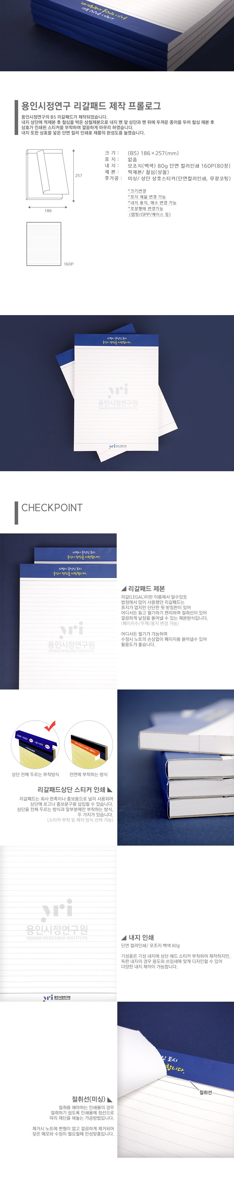 용인시정연구 리갈패드 B5 철심 (80매) / 독판