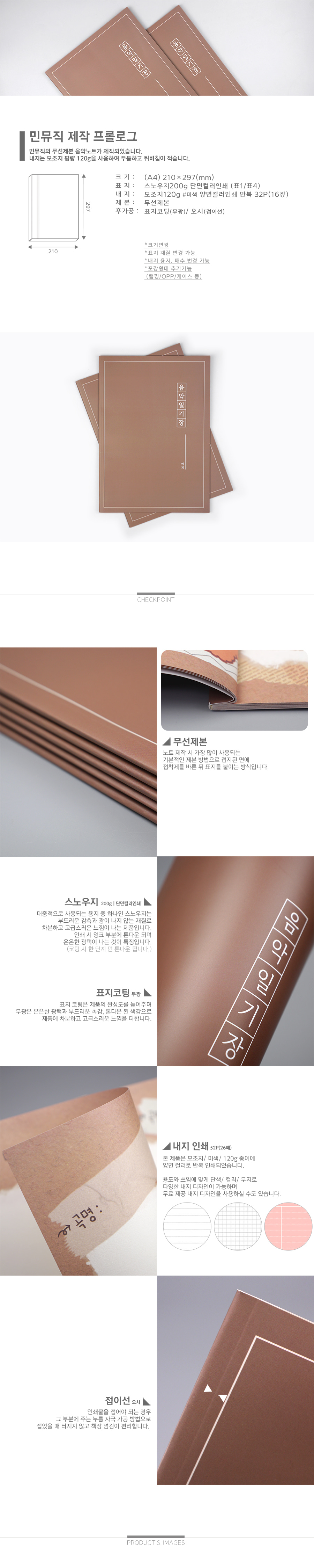 민뮤직 A4 무선노트 음악노트 (16장)