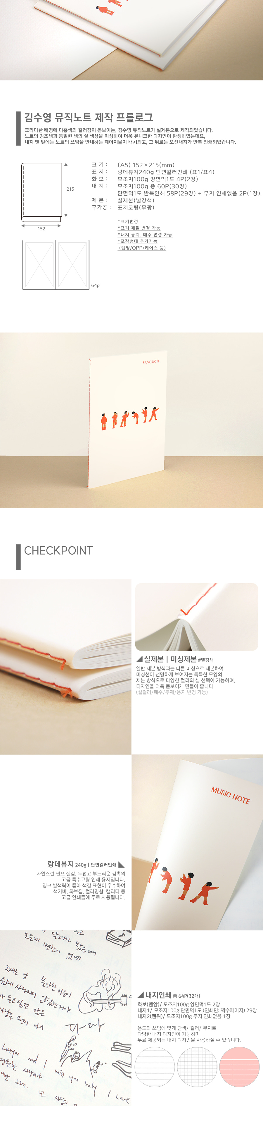 김수영 뮤직노트 A5 실제본노트 음악노트 (32매)